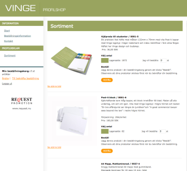 Varje kund kan få en egen unik webshop som är helt anpassad i design och innehåll. Berörd personal kan enkelt beställa ur företagets profilsortiment och samtidigt se lagersaldo i realtid.